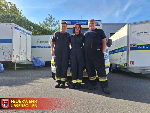 Die First Responder Gruppe Ursensollen hat einen Grund zur Freude: Drei engagierte Mitglieder haben erfolgreich ihren Lehrgang zum First Responder bei der Rescue Train GmbH in Nabburg abgelegt. Der Lehrgang umfasst 85 Unterrichtseinheiten und bildet die Basis für jeden First Responder. Unterschiedliche Themen werden im Kurs behandelt, darunter gehören neben den Grundkenntnissen zum Beispiel die Rettung aus Höhen und Tiefen mit der Drehleiter, ein Verkehrsunfall mit eingeklemmter Person sowie die vielen Praxisbezogenen Fallbeispiele. Hinzu kommen für die angehenden Einsatzkräfte noch 72 Stunden Rettungswachenpraktikum, hier sollen die erlernten Fähigkeiten in der Praxis gefestigt und wichtige Einsatzerfahrungen gesammelt werden. Anschließend sind Sie bereit für den Dienst als First Responder in unserer Gemeinde. Wir bedanken uns bei den Teilnehmern Jennifer Kalmann, Maximilian Köstler und Jonas Sperber für Ihre geopferte Freizeit und das Engagement für das Wohl unserer Bürger. Unser Dank gilt auch dem Team der Rescue Train GmbH aus Nabburg für die hervorragende Ausbildung.